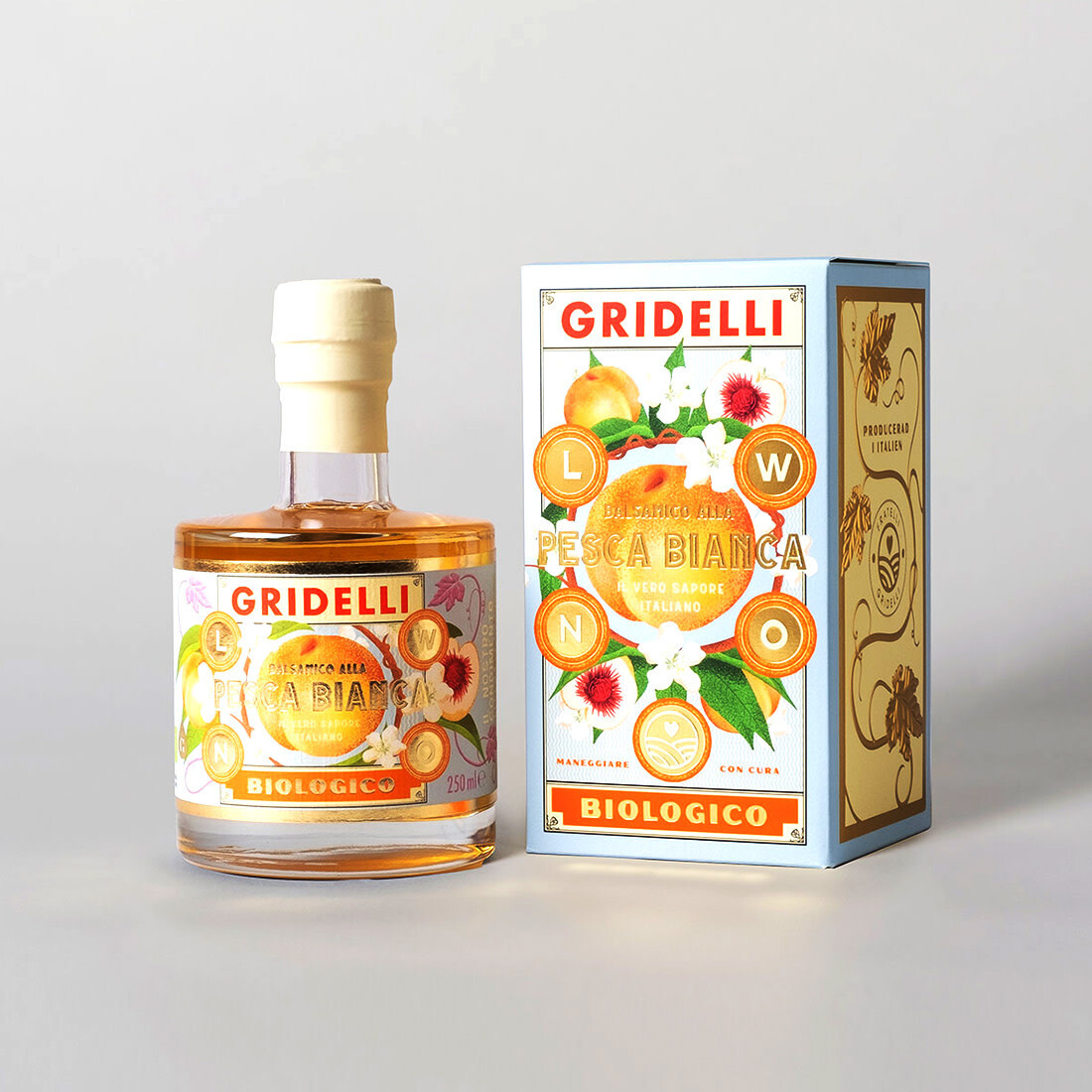 Hergestellt aus biologischen Trauben und Saft aus biologischen weißen Pfirsichen sowie natürlichen Aromen von weißem Pfirsich. Aceto Balsamico alla Pesca Bianca enthält keinen zugesetzten Zucker oder Farbstoffe. Passt hervorragend zu Olivenöl für einen leckeren grünen Salat, Obstsalat oder Pfirsich-Mozzarella-Salat. Pesca Bianca schmeckt hervorragend zu einer Käseplatte, zum Marinieren von Beeren und zum Beträufeln von Vanilleeis. Wie viele unserer Balsamico-Essige eignet er sich auch hervorragend zum Mixen frischer Drinks.