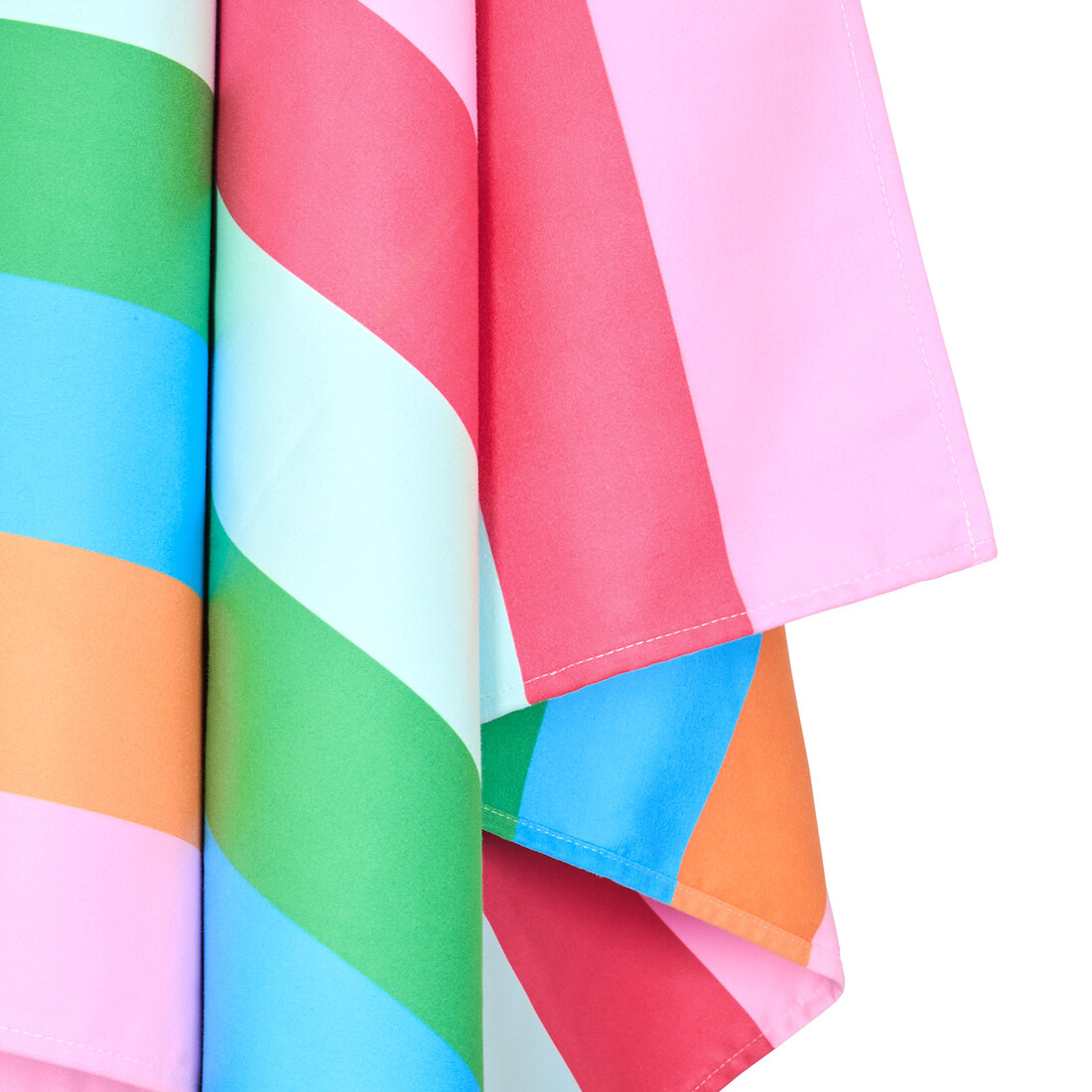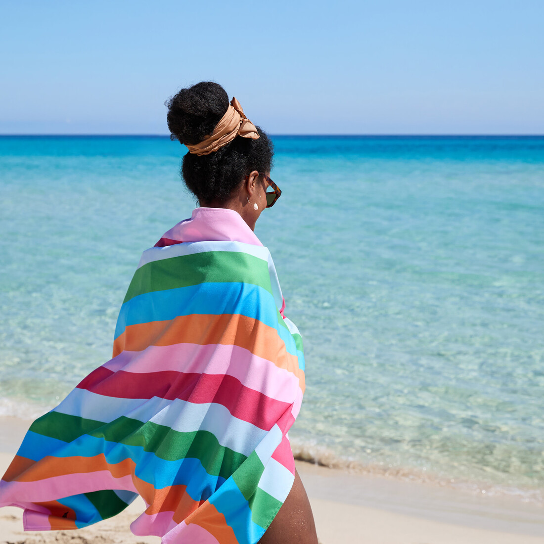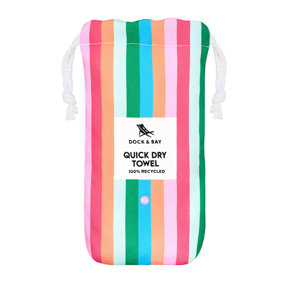 Dieses bunte Badetuch wurde aus 100% recycliertem Polyester/Polyamid (Mikrofaser) hergestellt, welches gegenüber herkömmlichen Handtüchern unendlich viele Vorteile bietet: schnell trocknend, sehr saugfähig, im gefalteten Zustand äusserst leicht und kompakt, Sand abweisend und es nimmt keine feuchten Gerüche auf. Mit elastischem Haken zum Aufhängen. In praktischem Stoff-Beutel geliefert. Es ist somit das perfekte Badetuch für die Reise. Yamatuti frutti!