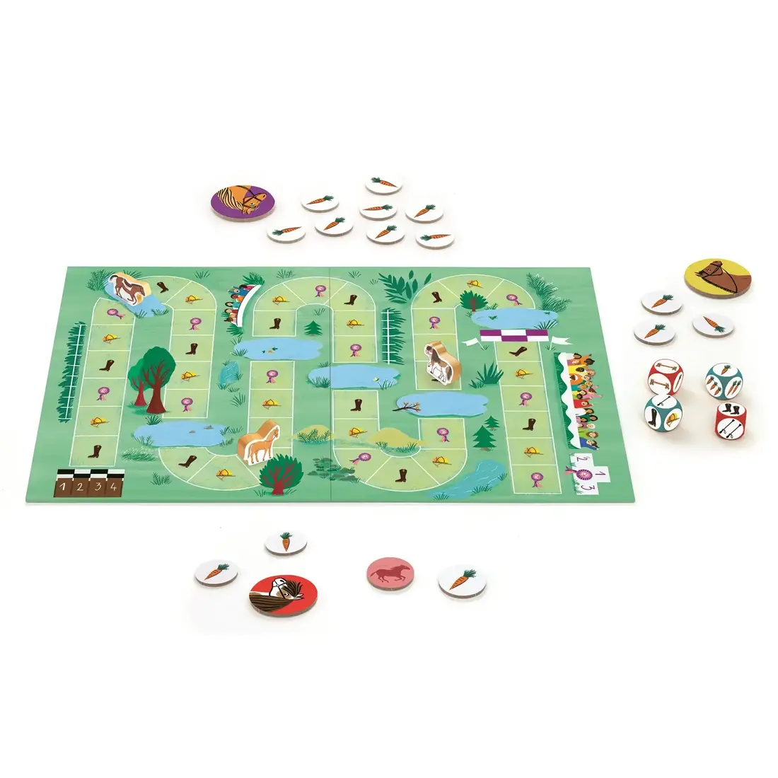 Ein strategisches und fesselndes Rennspiel zum Thema Pferde, bei dem jede Entscheidung, ob traben oder galoppieren, Einfluss auf den Weg zum Sieg hat. Um weit zu kommen, galoppiert man am besten clever! Ein rasantes Rennen steht bevor: Du musst blitzschnell loslegen und gleichzeitig die Energie deines treuen Pferdes im Auge behalten, um einen Einbruch vor der Ziellinie zu vermeiden. Vorsichtig oder wagemutig? Du hast die Wahl ... Nur die richtige Kombination aus Strategie und Geschwindigkeit führt dich direkt zum Sieg! Ein Gleichgewicht zwischen Geschwindigkeit und Energiemanagement, das in jeder Runde eine Herausforderung in Sachen Risikobereitschaft und Planung darstellt!