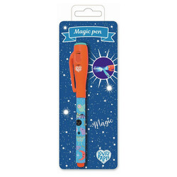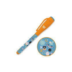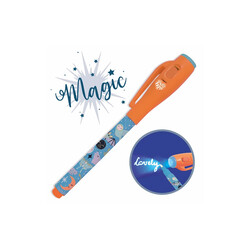 Filzstift mit unsichtbarer Tinte, die mit der UV-Lampe in der Kappe des Stiftes sichtbar gemacht werden kann.