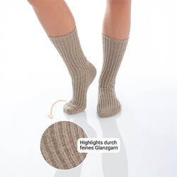 «Cara» gehört seit Jahren zu den absoluten Bestsellern der Herbst-Winterkollektion. Sie vereint alle Vorzüge, die eine perfekte Kuschelsocke braucht. «Cara» wird aus einer hochwertigen Materialkomposition aus Naturfasern gestrickt. Der hohe Anteil an Viskose, Wolle und Cashmere macht sie super kuschelig und warm. Das eingestrickte, dünne Glitzergarn verleiht ihr zudem einen besonderen, modischen Glanz und macht sie zu einem echten Eyecatcher. «Cara» wird als Doppelzylinderware in 9er Teilung gefertigt. Das sorgt dafür, dass sie gerade dünn genug gestrickt ist, um in jeden Schuh zu passen, ohne zu drücken. Das elastisch gestrickte Bündchen schneidet nicht ein und sorgt für zusätzlichen Tragekomfort.