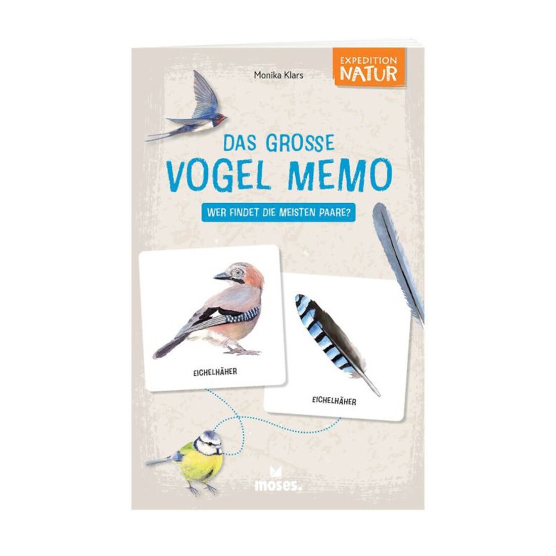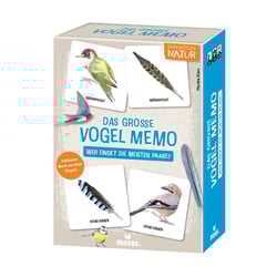Inhalt: 60 Kärtchen, Buch mit 48 Seiten, 30 illustrierten Memo-Paaren aus Vogel und Feder.