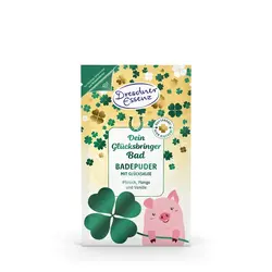 Das Badepuder «Dein Glücksbringer Bad» mit süßen Kleeblättern sorgt garantiert für ganz viel Glück in allen Lebenslagen und ist damit das perfekte Geschenk für einen lieben Menschen. Der fruchtig-süße Duft nach Pfirsich, Mango und Vanille sorgt für eine entspannende Atmosphäre, während man sich auf die Suche nach den kleinen Glücksbringern im Badewasser begibt. Ein Intensiv-Pflegekomplex mit Mandelöl pflegt deine Haut und hilft sie vor dem Austrocknen zu bewahren.