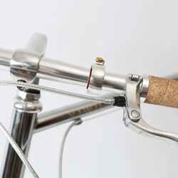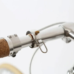 Die minimalistische Fahrradglocke lässt sich mit der Klemme einfach am YIWU Bike befestigen - sie passt optimal neben den Bremshebel, überzeugt durch ihren angenehmen Klang.