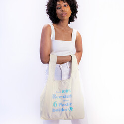 Diese Einkaufstasche besteht aus 100% recyceltem und wiederverwertbarem Material. Hergestellt aus 6 recycelten Plastikflaschen. Lässt sich in der beigefügten kleinen Tasche zusammenfalten und passt so in jede Tasche oder Handtasche. Der Breite Henkel sorgt für eine bequemen Passform über der Schulter.