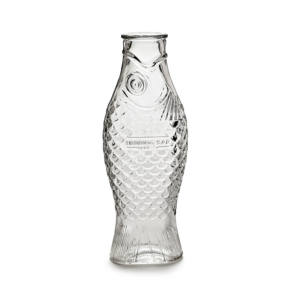 Die Karaffe Fish & Fish. Erfrischend, was das Design und Funktion betrifft. Als Wasserkaraffe liegt sie gut in der Hand und hat ein angenehmes Gewicht. Mit ihrer Fischoptik setzt sie smarte Akzente, wo immer sie im Einsatz ist. Ob mit Saft, Wasser oder Wein gefüllt – Fish & Fish ist eine originelle Ergänzung für jeden «Herring Bar Paris» unterstreicht das verspielte Design der Karaffe, die sich auch als coole Vase oder Deko-Objekt eignet.