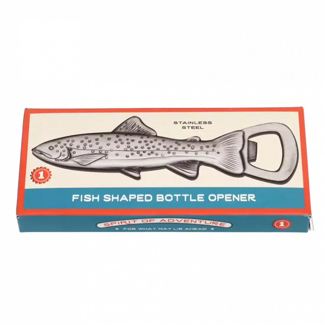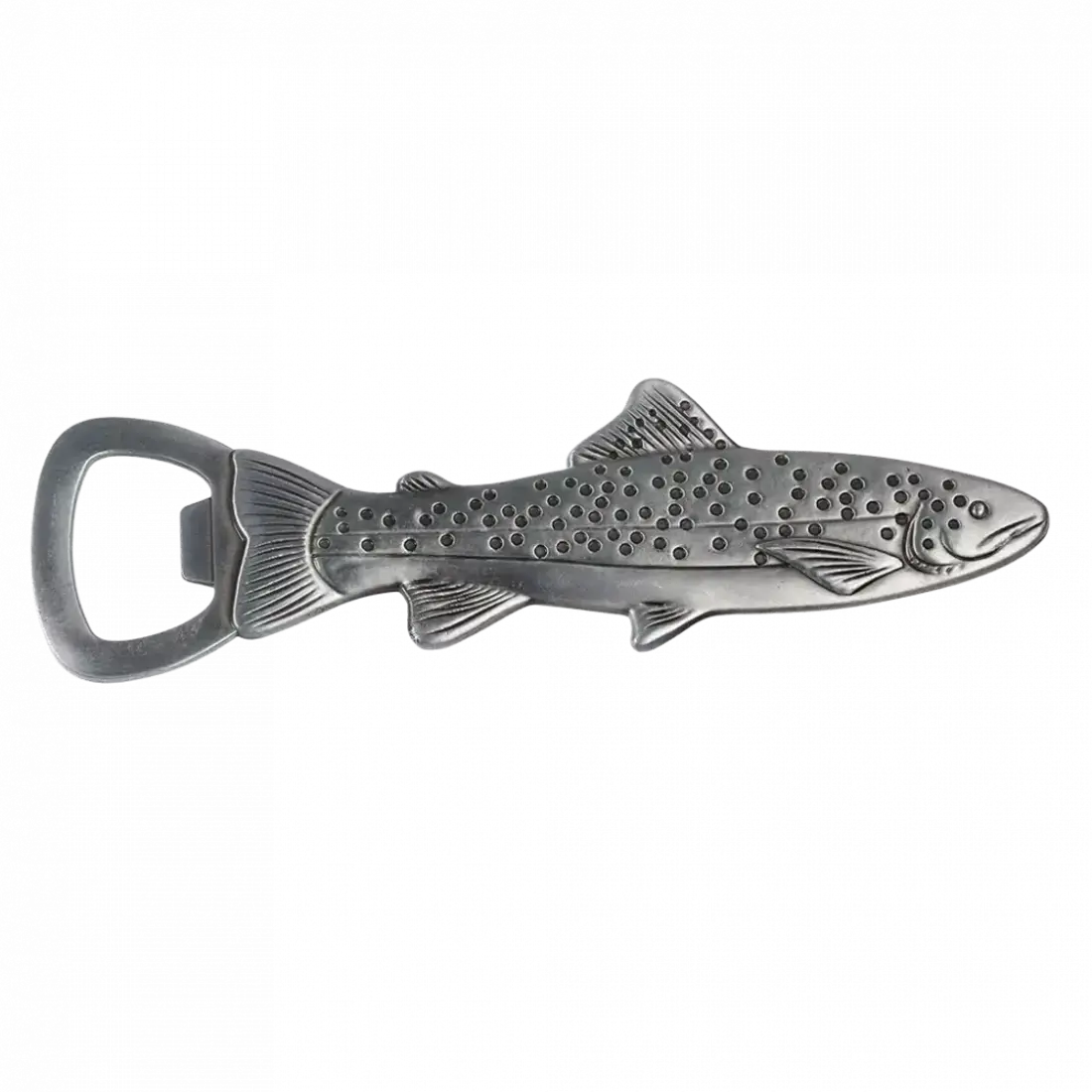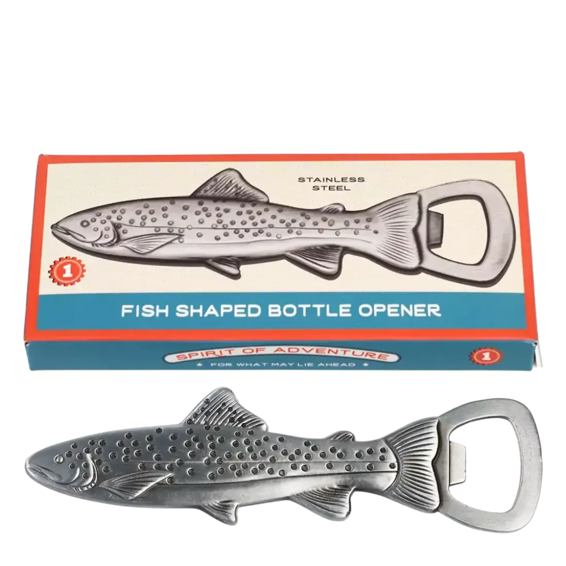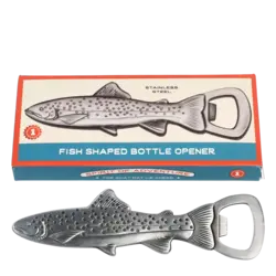 Ein Flaschenöffner in Form eines Fisches, hergestellt aus rostfreiem Edelstahl. Passend für alle gängigen Kronkorken.