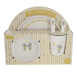 Mit dem liebevoll gestalteten Set «Petites Souris» wird jede Mahlzeit zu einem kleinen Wohlfühlmoment. Zarte Mäuse-Illustrationen in einer ruhigen Nachtatmosphäre mit Sternenhimmel schaffen eine sanfte, geborgene Stimmung am Tisch. Das leichte und robuste Melamin ist ideal für kleine Hände und perfekt für den Alltag. So förderst du spielerisch die Selbstständigkeit beim Essen. Eine wunderschöne Geschenkidee zur Geburt oder für Babys erste eigene Mahlzeiten.