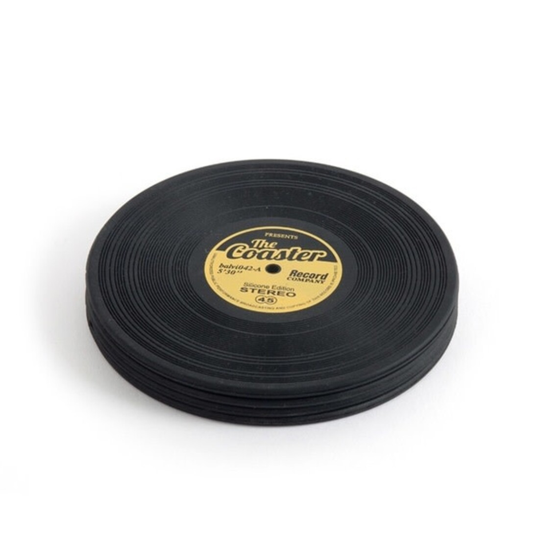 Diese Vinyl-Untersetzer «The Coaster» sind ein super cooles Geschenk für alle, die Vinylplatten lieben. Die Untersetzer haben eine farbige Innenseite. So weiß jeder, welches Glas wem gehört. Die Untersetzer sehen aus wie Mini-Plattenalben. Liebst du Retro-Accessoires? Dann sind die schwarzen Untersetzer in Form einer LP genau das Richtige für dich. Die Untersetzer bestehen aus weichem Silikon, sind daher leicht zu reinigen und bleiben gut auf dem Tisch liegen.