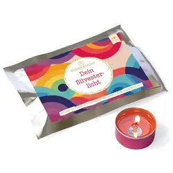 Inhalt: je 1 Teelicht mit Glücksbotschaft, Brenndauer ca. 4 Stunden
