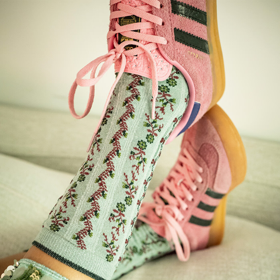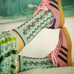 Diese wundervollen Socken sind eine Augenweide und sehr angenehm zu tragen. Die Socken bestehen aus ägyptischer Baumwolle, doppeltem Elasthanfaden und weichem Lurex, das vor dem Stricken gewaschen wird, damit die Weichheit garantiert ist.
