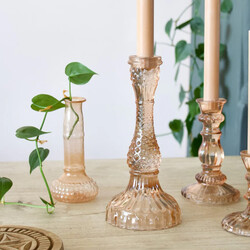 Handgefertigter Kerzenständer aus recyceltem Glas der Spezial Farbe Zimt-Pfirsich.