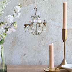 Hübscher kleiner Kronleuchter mit Glaselementen und Kerzenhaltern. Dieser liebevoll handgefertigte Dekoleuchter aus Indien eignet sich nicht nur als Weihnachtsdeko, sondern macht sich auch einzigartig als Hänger hinter einem Fenster, oder im Bad. Macht jeden Tag zu einem kleinen Fest!