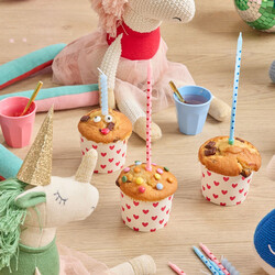 Die schönsten und festlichsten Kuchenkerzen in zartem Rosa mit kleinen roten Herzen. Egal, ob du deinen Geburtstagskuchen gekauft oder selbst gemacht hast, diese Kuchenkerzen verleihen ihm einen fabelhaften und fröhlichen Look! Die Kerzen sind 15 cm groß und werden in einer Schachtel mit 10 Stück geliefert.