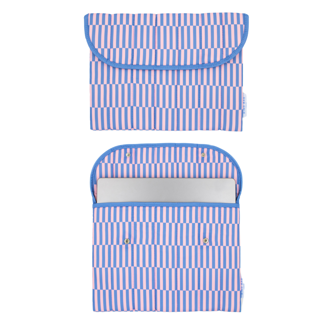 Diese Laptoptaschen wurde entwickelt, um deine Gerät auf Reisen, beim Pendeln oder zu Hause sicher und stilvoll zu verstauen. Die aus 100% recycelten Plastikflaschen hergestellten Hüllen sind wasserfest und maschinenwaschbar. Die gesteppte Polsterung schützt Ihre Geräte vor Stössen und Kratzern, und die Tasche lässt sich mit Metallknöpfen verschliessen.