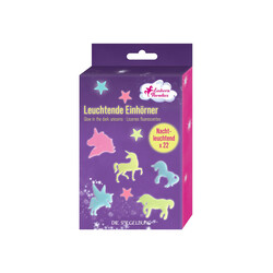 Einhorn-Magie im Kinderzimmer mit diesen nachtleuchtenden Einhörnern in unterschiedlichen Farben und Größen. Jedes Set beinhaltet 24 Klebepunkte, die eine einfache und schnelle Anbringung an Wänden oder Decken ermöglichen. Die verschiedenen Motive aus dem Einhorn-Paradies speichern tagsüber das Licht und tauchen das Kinderzimmer bei Nacht in einen magischen Schimmer..