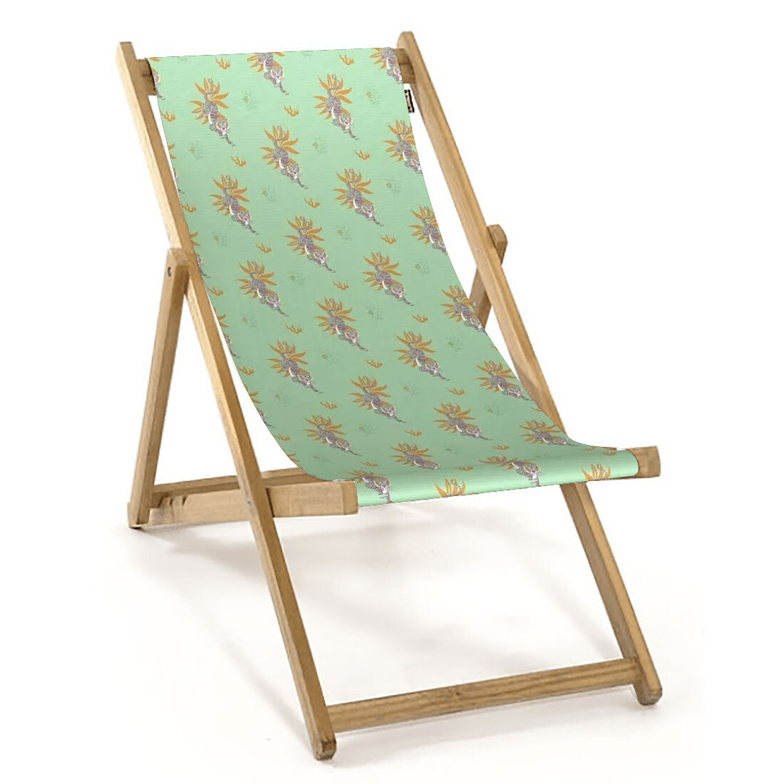 Mit diesem hübschen Liegestuhlbezug verwandelst du deine Gartenlounge im Nu in eine exotische Oase. Der Stoffbezug ist abnehm- und austauschbar, so kannst du den Look von deinem «chaise longue» nach Lust und Laune ändern. Der qualitative und strapazierbare Outdoor-Stoff wird in Italien gewoben, bedruckt und verarbeitet. Das robuste Liegestuhlgestell ist aus europäischem Akazienholz und wird in Portugal gefertigt.