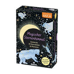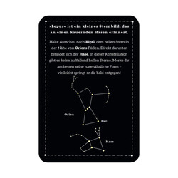 Dieses detailreich illustrierte Kartenset vermittelt kindgerecht erstes Wissen über Sternbilder und Planeten. 30 stabile Karten mit liebevoll gestalteten Illustrationen zeigen bekannte Himmelskörper, erklären ihre Bedeutung und ihre Lage am Nachthimmel. Dank Glow-in-the-Dark-Effekt sind die Sternbilder auch im Dunkeln erkennbar.