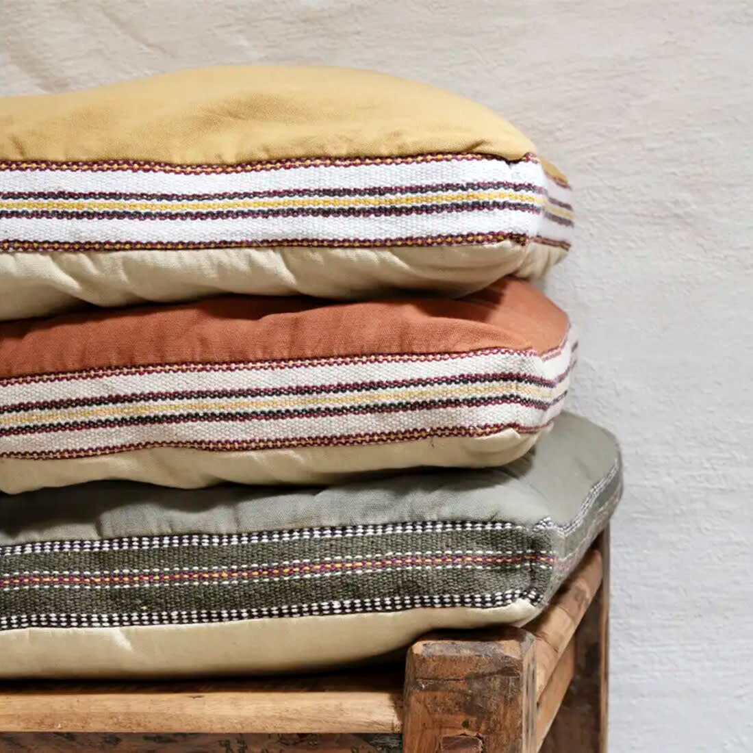 Weiche Baumwollmatratze für entspanntes Wohnen. Diese weiche, stützende Baumwollmatratze schafft entspannten Komfort – drinnen wie draußen. Sie ist doppelseitig in staubigem Grün und Sand gestaltet, mit gestreifter Kontrastpaspel im Stil traditioneller dänischer Textilien. Ob auf Möbeln, direkt auf dem Boden oder auf der Terrasse. Die Matratze lädt zum Lesen, Spielen oder für ein kleines Nickerchen ein. Der Bezug aus stückgefärbter Baumwolle ist strapazierfähig und farbecht. Dank verdecktem Reißverschluss lässt er sich leicht abnehmen. Die feste, herausnehmbare Polyesterfüllung sorgt für Komfort und macht die Matratze angenehm leicht – ideal zum flexiblen Einsatz in verschiedenen Räumen.