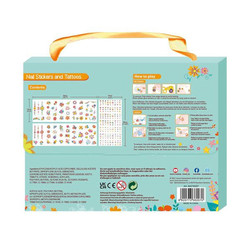Enthält zwei Blätter mit temporären Tattoos und ein Blatt mit Nagelstickern.