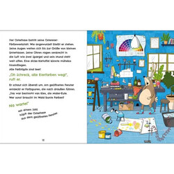 Wer hat die Osterfarben geklaut? Ach du dickes Ei! Dem Osterhasen bleibt der Mund offen stehen, als er seine Osterwerkstatt betritt. Die Farbtöpfe sind leer! Rot, Grün, Blau, Gelb – alle Eierfarben sind wie vom Erdboden verschluckt. Und nun? Er kann den Kindern doch keine weissen Eier verstecken! Eines ist klar: Er muss seine Farben schleunigst wiederfinden, denn Ostern steht bereits vor der Tür … Eine lustige Ostergeschichte für Mädchen und Jungen ab 4 Jahren mit lustigen Charakteren, einem Abenteuer voller Überraschungen und einem Hauch Magie!