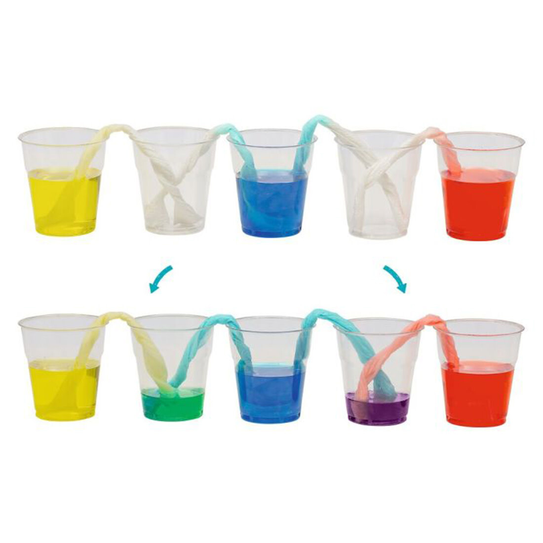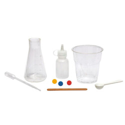 Besonderheiten: Mit verschiedenen Farbtabletten, 3 Fläschchen, 6 Plastikbechern, Pipette, Erlenmeyerkolben, Rührstab, Portionierlöffel, Anleitung und Hintergrundinformationen zur additiven Farblehre