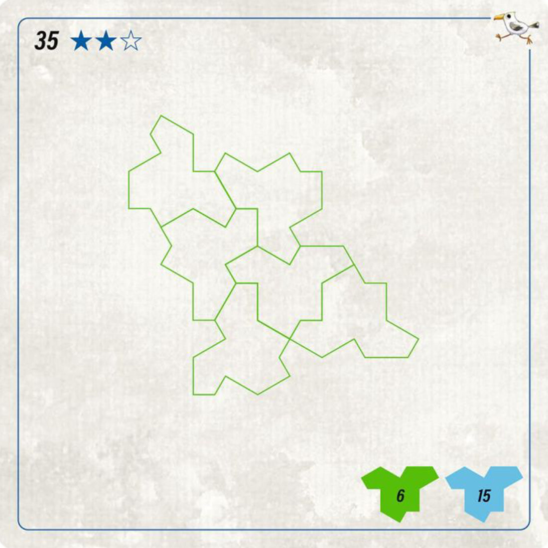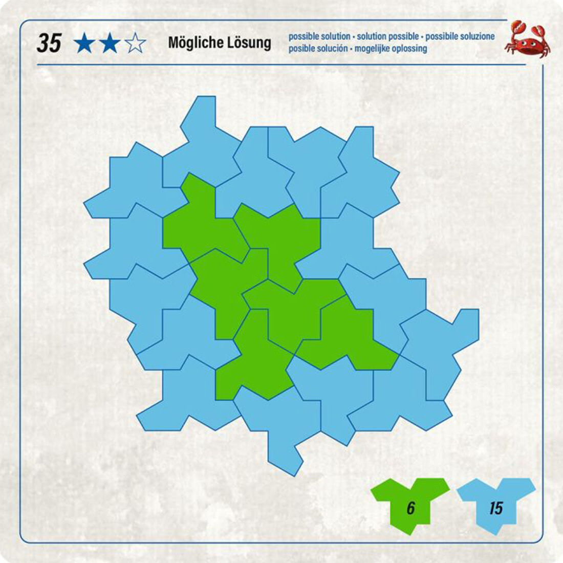 Das Legespiel enthält 50 knifflige Aufgaben, bei denen grüne «Insel-Kacheln» clever mit blauen «Wasser-Kacheln» ergänzt werden müssen – immer wieder anders, immer wieder herausfordernd. Drei Schwierigkeitsstufen ermöglichen einen leichten Einstieg und motivieren zum Dranbleiben.