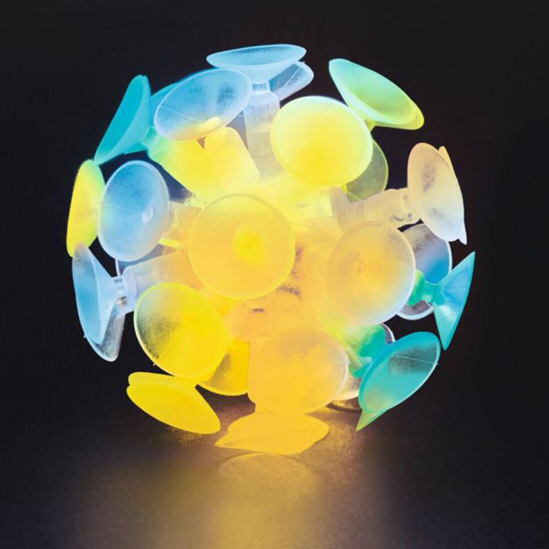 Der leuchtende Saugnapfball erklärt Groß und Klein spielerisch das Prinzip der Bionik, also dem Übertragen von Phänomenen der Natur auf die Technik. Dabei bedient sich der Ball mit den starken Saugnäpfen natürlich auch selber an tierischen Vorbildern. Wirft man den Saugnapfball also an eine glatte Oberfläche, wie ein Fenster oder Fliesen, prallt dieser nicht ab, sondern bleibt kleben und beginnt zu leuchten. Er zeigt so, wie sowohl Schwerkraft als auch Luftdruck den Ball an der Oberfläche kleben lassen.