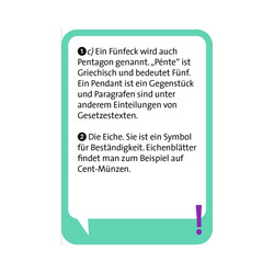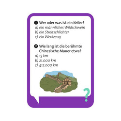 Welches Volk baute die Pyramiden von Gizeh? Und mit welcher Sportart verbindet man die Namen Boris Becker und Steffi Graf? In diesem Quiz warten 100 spannende Fragen aus unterschiedlichsten Themenbereichen wie Geographie, Geschichte und Sport darauf, gelöst zu werden. Die kleinen Quizkarten im handlichen Format sind für alle Lebenslagen geeignet. Egal, ob Wartezeiten beim Arzt oder ellenlange, langweilige Zugfahrten – sie sorgen stets für die nötige Ablenkung und lassen die Zeit wie im Flug vergehen. Jedes Quiz besteht aus 50 Karten, vollgepackt mit abwechslungsreichen, kniffligen Quizfragen, Rätseln, Knobeleien und Denksportaufgaben.