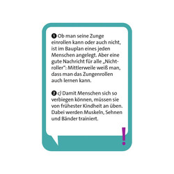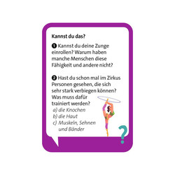 Wie funktioniert das Herz? Wozu braucht der Mensch Muskeln, und warum können manche Menschen ihre Zunge rollen – andere nicht? Dieses kompakte Quiz vermittelt spannendes Wissen rund um den menschlichen Körper in Frage-und-Antwort-Form.
