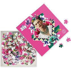 Frida Kahlo 1000 Teile Puzzle. Frida Kahlo, eine der ikonischsten und bedeutendsten Künstlerinnen des 20. Jahrhunderts, hat mit ihrer kühnen, sorgfältig ausgearbeiteten visuellen Identität in vielerlei Hinsicht eine Erweiterung ihrer Kunst geschaffen, die ihr mexikanisches Erbe und ihre gegenkulturellen Ideale zelebriert und gleichzeitig traditionelle Vorstellungen von weiblicher Schönheit in Frage stellt. Dieses auffällige und farbenfrohe Porträt fängt Kahlos lebhaften, extravaganten Stil sowie ihre stählerne Haltung ein. Ihr direkter, unerschrockener Blick vermittelt dem Betrachter ihre Stärke und Hartnäckigkeit und unterstreicht, warum ihr Bild heute noch genauso inspirierend ist wie damals.