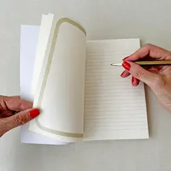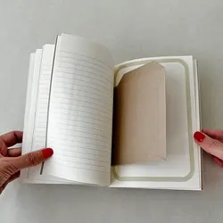 Inhalt: 160 Seiten, darunter: 64 linierte, 44 unbedruckte, 28 unbedruckte mit Rand, 12 Punktraster, 12 Kraftpapier