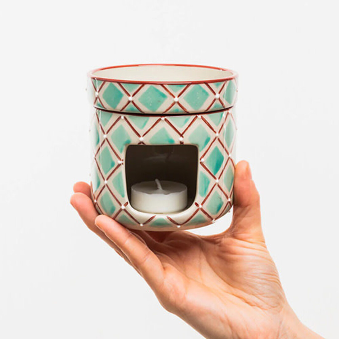 Diese Duftöllampe verbindet funktionales Design mit einem nostalgischen Touch. Gefertigt aus hochwertigem Steinzeug, zeichnet sie sich durch ihre glatte, matte Oberfläche und sanfte Farbtöne aus, die den authentischen Retro-Look der Serie unterstreichen. Die geschwungenen Linien und das elegante Design machen sie zu einem stilvollen Highlight in deinem Badezimmer oder Wohnbereich. Einfach ein Teelicht in den unteren Bereich stellen, einige Tropfen deines bevorzugten ätherischen Öls in die obere Schale geben, und schon erfüllt ein angenehmer Duft den Raum.