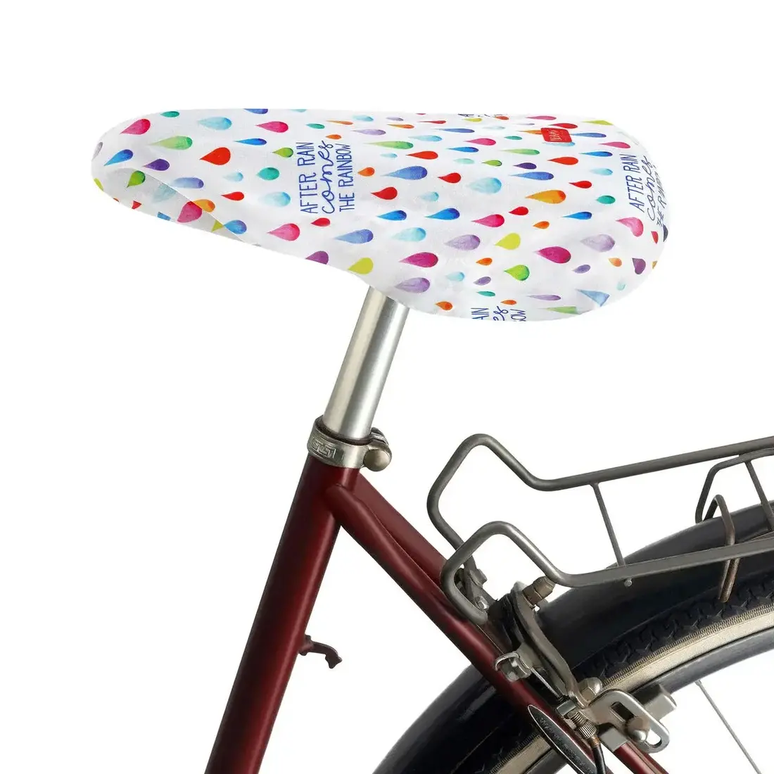 Manchmal regnet es, wenn es schon nass ist … aber nicht auf deinen Sattel, wenn du den Fahrradsattelbezug im Regenbogen-Design benutzt. Wasserabweisender und universeller Fahrradsattelbezug dank elastischem Rand, der sich automatisch an jeden Sattel anpasst. Schützt vor Regen und Staub.