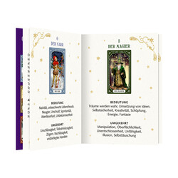 Inhalt: Tarot-Spiel in Schiebeschachtel (10 x 13 x 2,5 cm) mit 24 Spielkarten (7 x 12 cm) und Anleitung (36 S.) Mit Begleitheft: Die Bedeutungen der 24 Karten werden dort erläutert. Veredelt mit goldenem Schnitt: Jede Karte überzeugt durch nostalgische Eleganz.