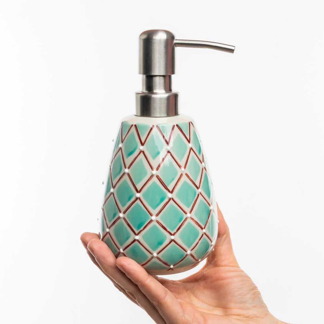 Dieser Seifenspender mit seinem charmanten Design im Vintage-Stil bringt Nostalgie in dein Badezimmer. Die glatte, matte Oberfläche und die sanften Farbtöne verleihen dem Spender einen authentischen Retro-Look, der zugleich zeitlos und modern wirkt.