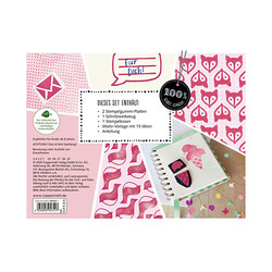 Inhalt: 2 Stempelgummi-Platten, 1 Schnitzwerkzeug, 1 Stempelkissen, 1 Motiv-Vorlage und Anleitung