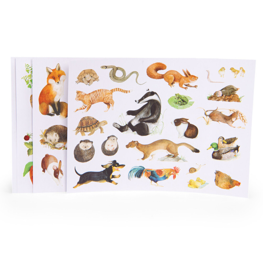 Ein Beutel mit 100 wiederverwendbaren Aufklebern zum Thema Natur, mit denen sich hübsche Dekorationen gestalten lassen. Leicht zu greifen und abzuziehen, ideal für die ersten kreativen Aktivitäten der Kleinsten. Der Beutel enthält 4 Bögen mit Aufklebern.