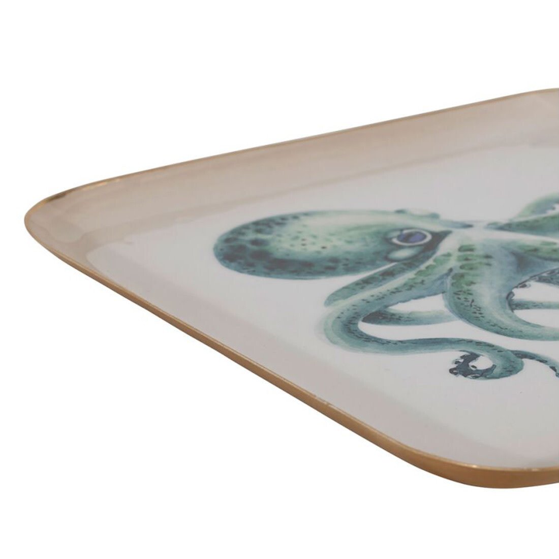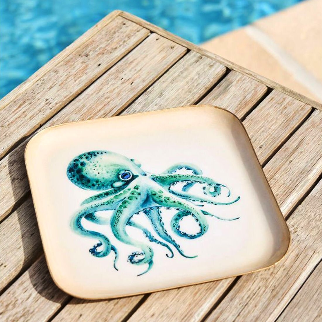 Dieses quadratische türkisfarbene Tablett begeistert mit einem maritimen Oktopus-Motiv. Es eignet sich perfekt um Snacks zu servieren, Kaffee stilvoll anzurichten oder deinen Couchtisch dekorativ in Szene zu setzen. Die leuchtende Türkisfarbe erinnert an die frischen Töne des Ozeans und passt wunderbar zu einem entspannten Strandhausstil.