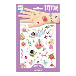 Zwei Bögen mit verträumten Feen-Tattoos! Zur Freude der Kids sind sie mit metallischen Details verziert! Für eine einfache Anwendung sind sie vorgestanzt und werden mit etwas Wasser aufgetragen. Dermatologisch getestet!