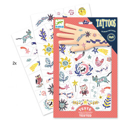 Inhalt: 2 Bögen mit temporären Leuchttattoos und 1 Anleitung