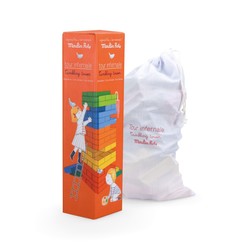 Ein beliebtes Spiel von Moulin Roty. Der Wackelturm in hübschen bunten Farben. Der Würfel entscheidet, welche Farbe entfernt werden muss. Ein alt bekanntes Spiel, das neu interpretiert wurde.