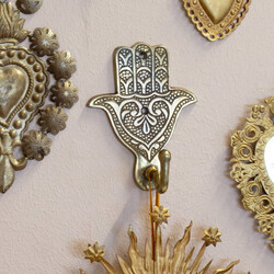 Schöner kleiner Wandhaken Hamsa handgefertigt aus Indien.