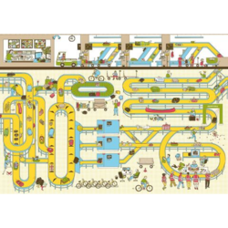 Ein Flughafen steckt voller Überraschungen! Egal ob im Ankunftsbereich, auf der Zuschauerterrasse oder im grossen Einkaufszentrum: überall wuseln und hasten Reisende, werden Gepäckstücke transportiert oder es begegnen uns allerlei interessante Fahr- und natürlich Flugzeuge. Für Gross und Klein gibt es Spannendes zu entdecken. Spüre die tierische Flugzeugbesatzung auf, die sich in den Wimmelbildern versteckt.