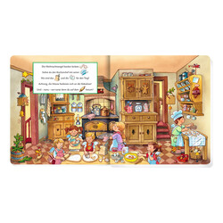 In der Küche werden leckere Plätzchen gebacken und die Engel verpacken in ihrer Werkstatt die Geschenke. Der kleine Bär träumt vom Weihnachtsmann. Auf der Piste rasen die Skifahrer und die Schlittenfahrer um die Wette. Ganzseitige Wimmelbilder und einfache Mitlesegeschichten laden schon die Kleinsten zum Suchen ein.
