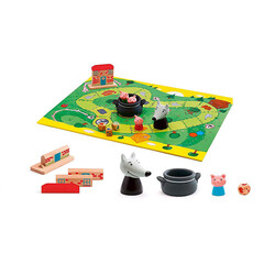 Die drei Schweinchen müssen zusammenhalten und schnell sein, um ihr Steinhaus fertig zu bauen, bevor der Wolf sie erwischt und in den Kochtopf steckt. Ein spannendes Kooperationsspiel.